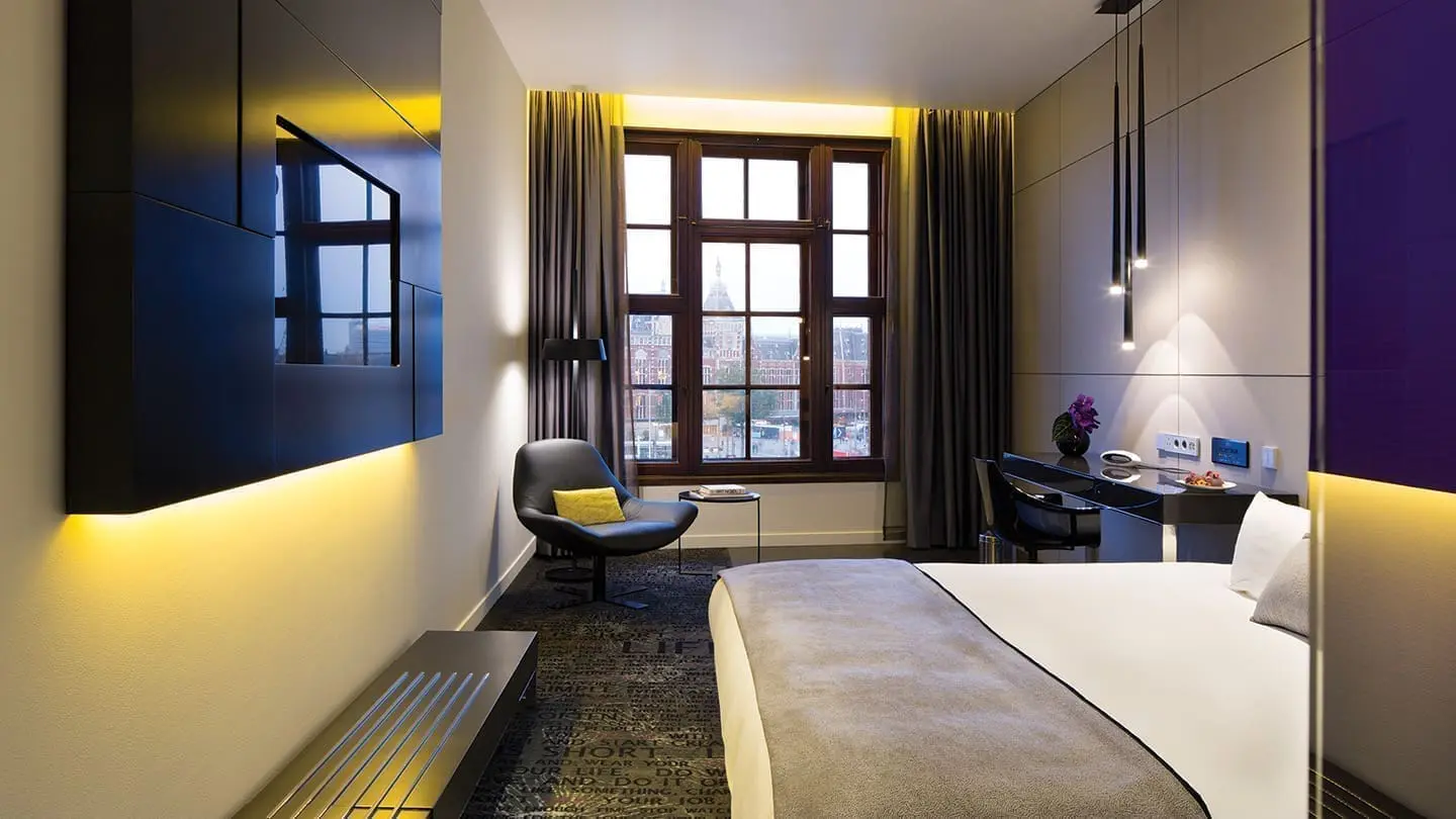 Don’t worry about finding the best views in the city – they’re right here. Savour the sights of Amsterdam’s Centraal Station and charming canal boats from the comfort of your king-size bed.