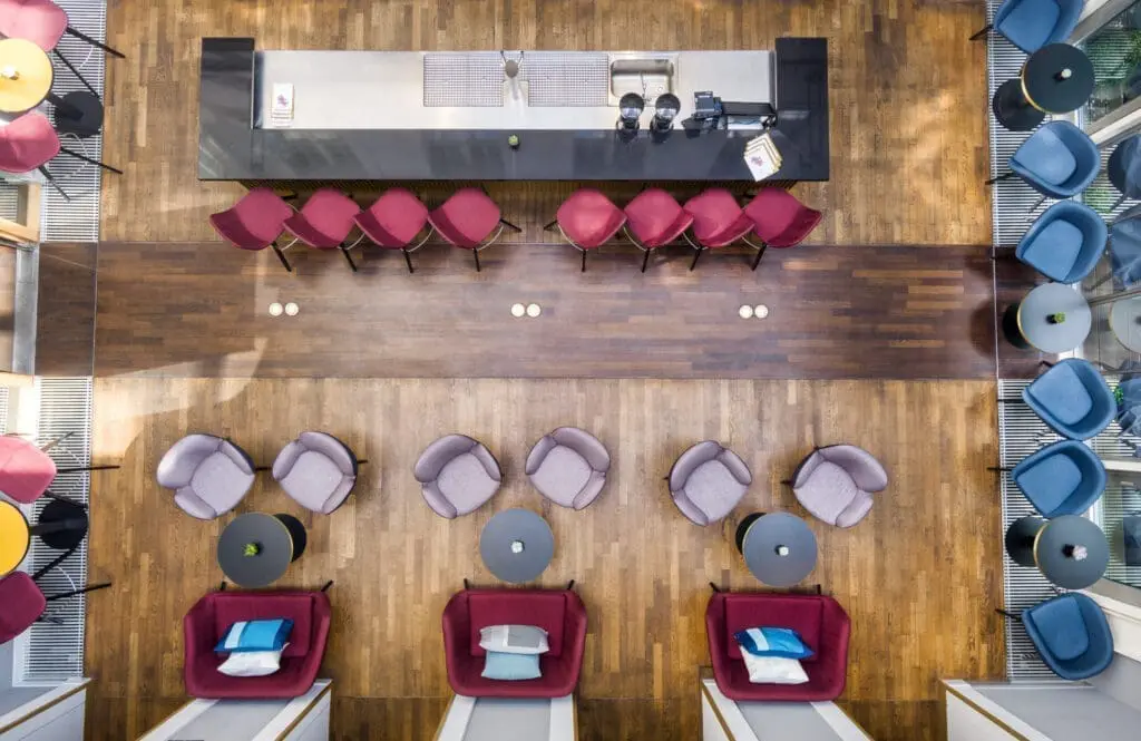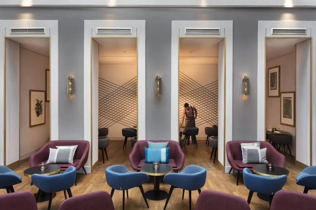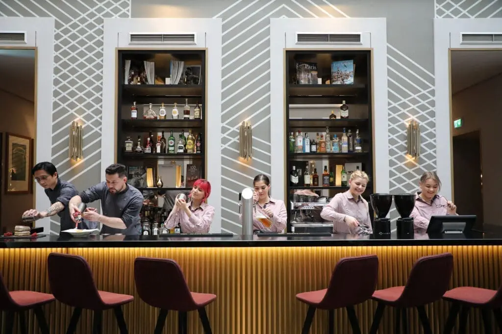 International cocktails and a curated selection of Europe’s best wines. Located in the heart of the grand Rococo Ermelerhaus, the Upside Down Bar is the creative beating heart of art’otel, with Baseltiz-inspired interiors to match.