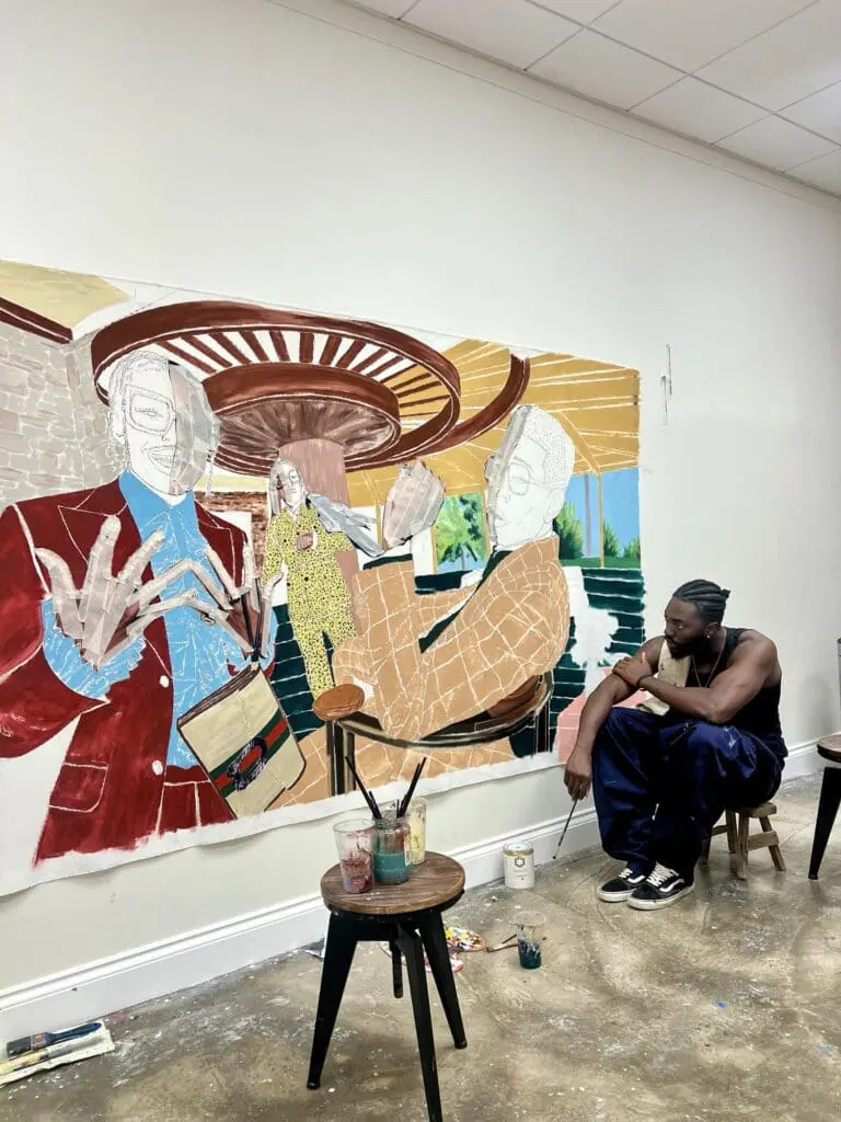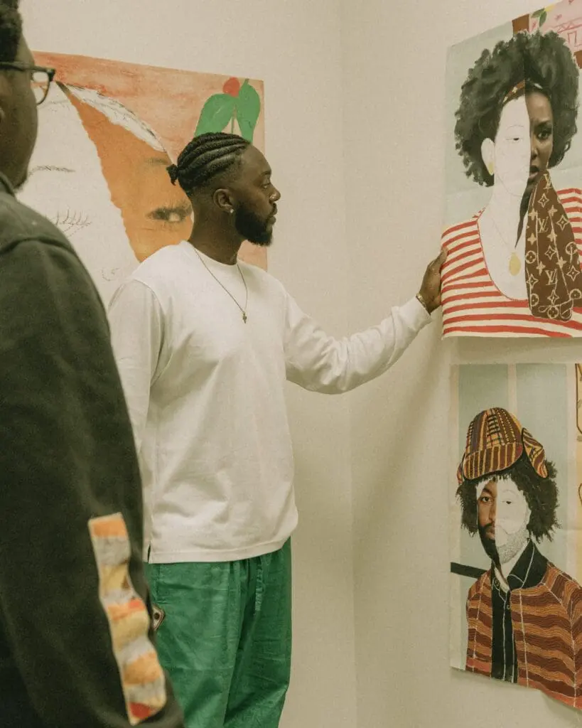 Emmanuel Unaji (b.1994) is a British-born Nigerian multidisciplinary artist & co-founder of the award-winning design collective, Unaji & Co. He studied fashion design and graduated with a BA (Hons) in Fine Art at Kingston University (2021). Bold and unconventional, Emmanuel’s unique style is to mechanically deconstruct icons to reverse engineer the unconscious bias applied to portraiture. His signature portraits combining collage, drawing, and painting have gained widespread recognition in the creative industries and have been featured in household institutions including Le Carreau du Temple Paris, The Royal Exchange, Tate Britain, Adidas Flagship Store, London Fashion Week, and The Freemasons Hall. Coined as ‘new talent to watch’ by several publications and brands such as Forbes, British GQ and Adidas, Unaji explores the socio-economic movement of the African body, sculpting his own space, at the intersection of fashion, luxury, street, and fine art.