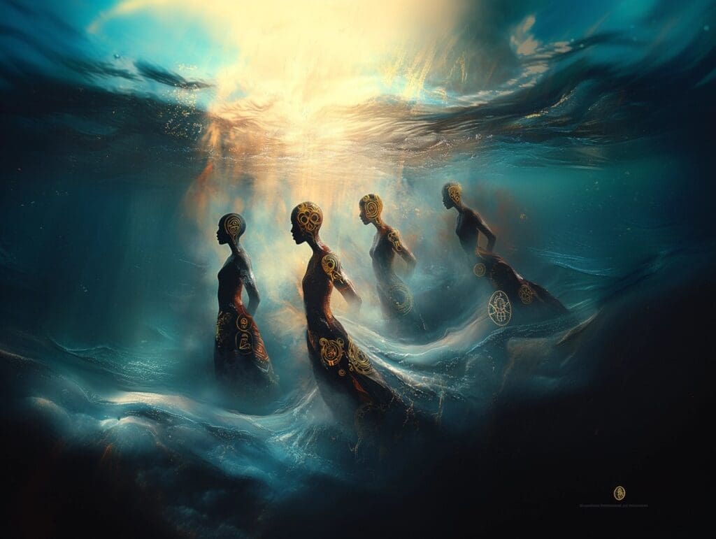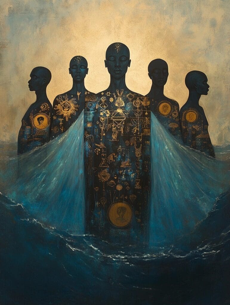 Through layered images, archival fragments, and spectral presences, the project imagines the spiritual walk of those who perished. Their souls do not vanish; they gather in communion beneath the waves, drawn toward ancestral memory, toward Africa, toward a cosmic Baobab that transforms absence into presence.