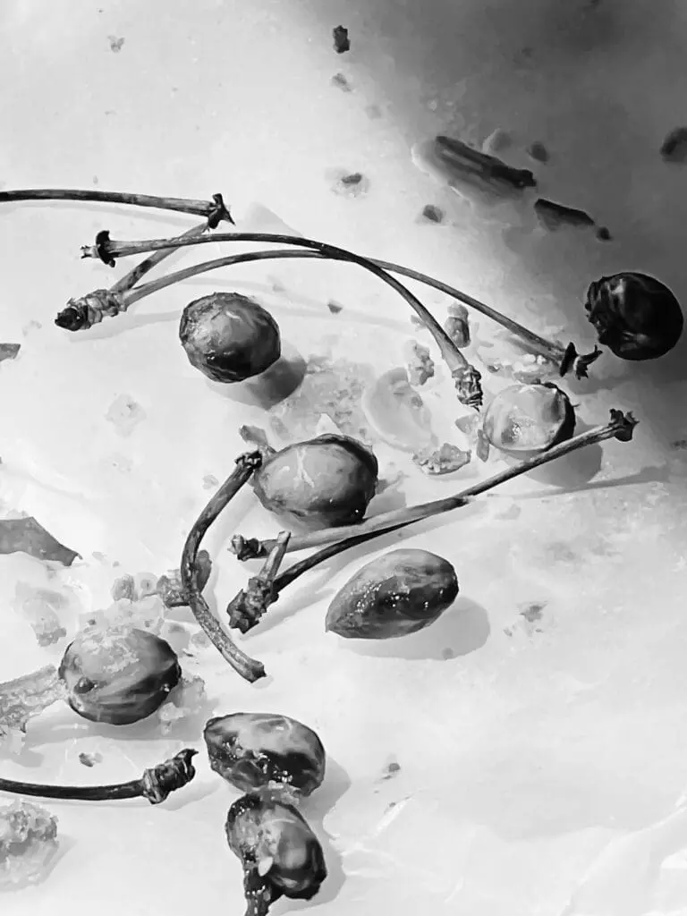 The piece centres on Sadler’s go-to party trick: tying a cherry stem with his tongue. A rite of passage at house parties – a flirty gesture loaded with metaphor. The work explores adolescent angst and the sticky pressures of heteronormative milestones: proms, proposals, matching towels.