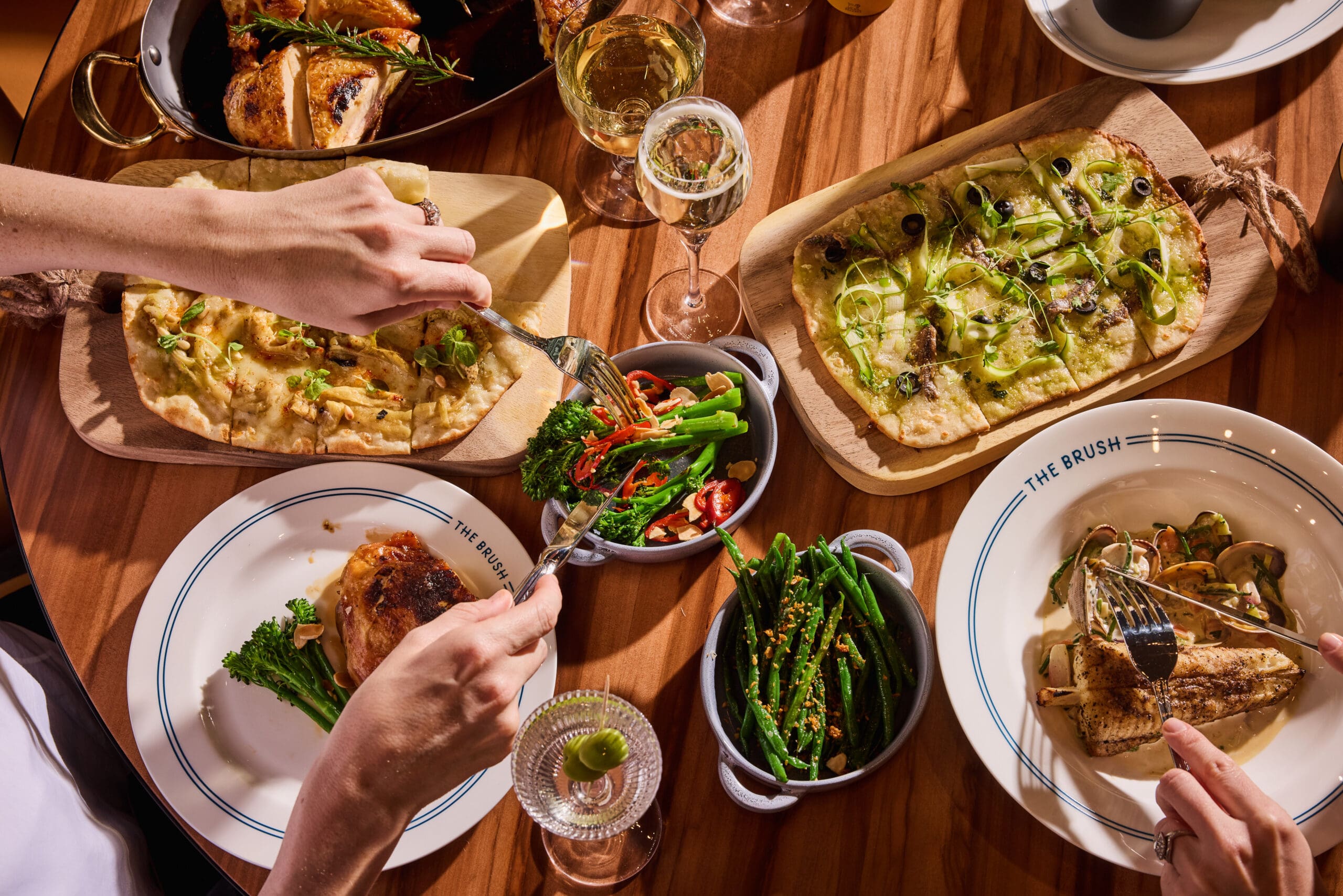 The Brush East London Grand Café is the ideal spot for any moment in the day from breakfast, lunch, dinner or simply a coffee and or cake. We also have a large terrace open all year round to dine or drink al fresco come rain or shine, and a delightful brunch with live DJs every weekend from 12pm – 4pm.