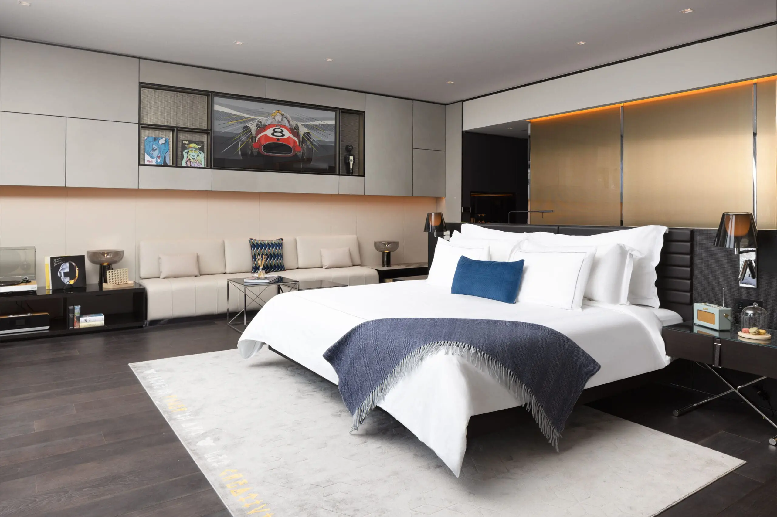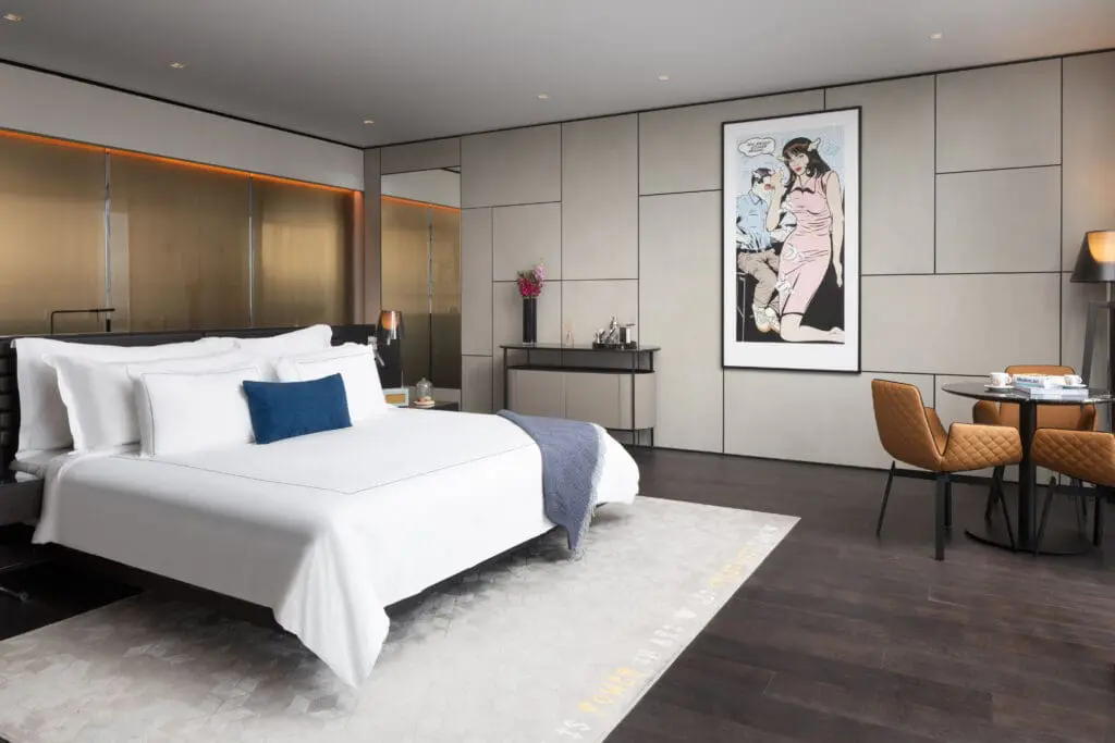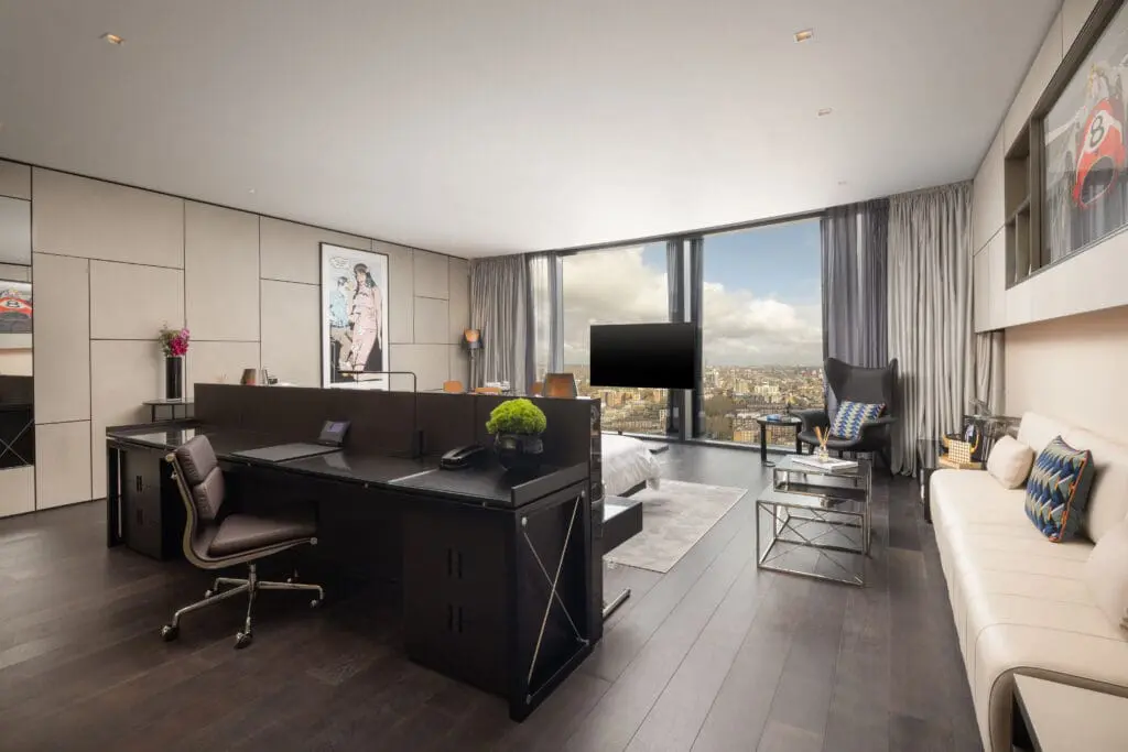 Sky-high style meets creative comfort in our Skyline Junior Suites. Located on the 23rd floor, these open-plan spaces feature floor-to-ceiling windows with spectacular skyline views of Shoreditch and beyond. Striking D*Face artwork, a King size bed, in-room fitness equipment, vinyl record players and cocktail stations – bringing together art and indulgence in one unforgettable stay.