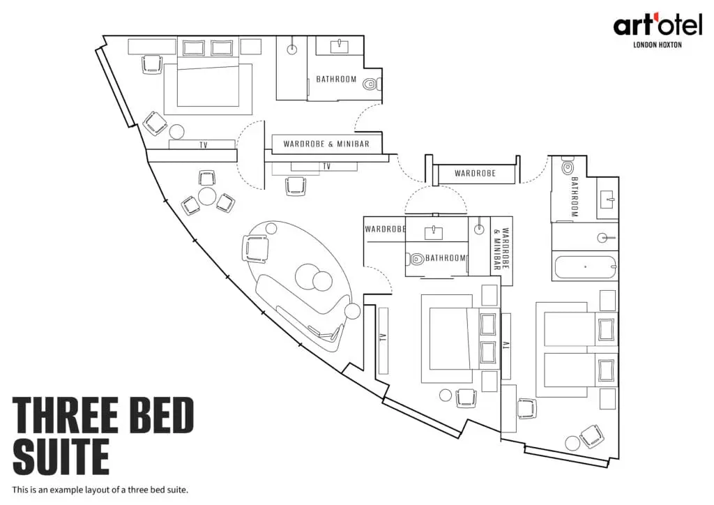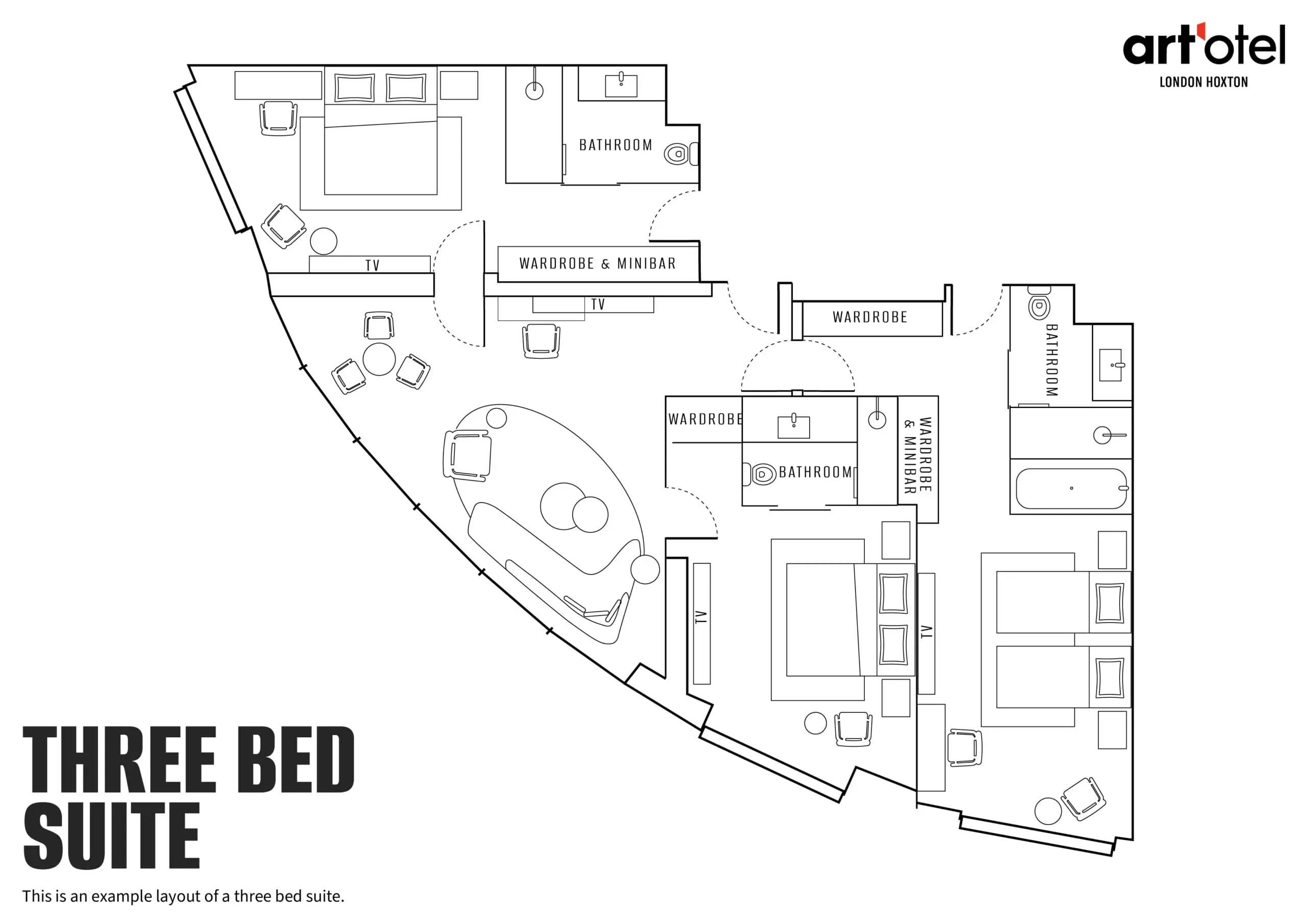 Enjoy the ultimate stay in our Three Bedroom Suite. With 100 square metres of space and three interconnecting master bedrooms featuring King size double or Twin beds, the ideal suite for those travelling in larger groups that do not compromise on space, quality or style and to be at the very heart of London’s most creative neighbourhoods.