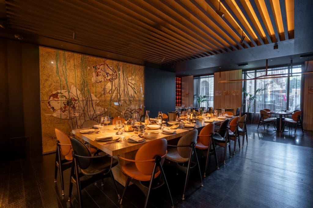 This semi-private space with lively views into YEZI’s open kitchen hosts the biggest art piece in the hotel – “Antropocene” by Pietro Ruffo. The Chef’s Table offers the perfect space for an intimate dining experience with 20 guests, celebrating Pan-Asian cuisine, cocktails and perfectly-paired wines.