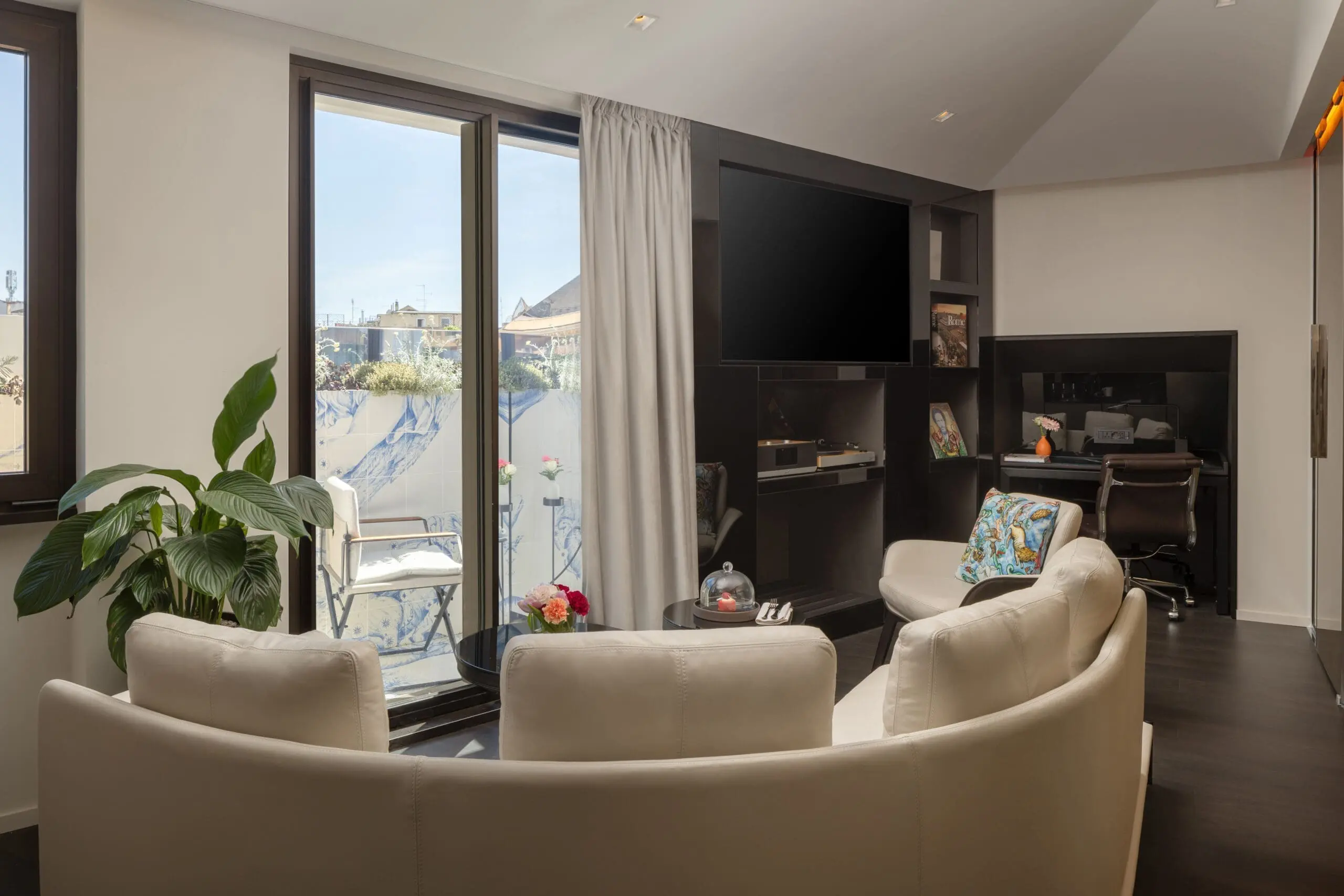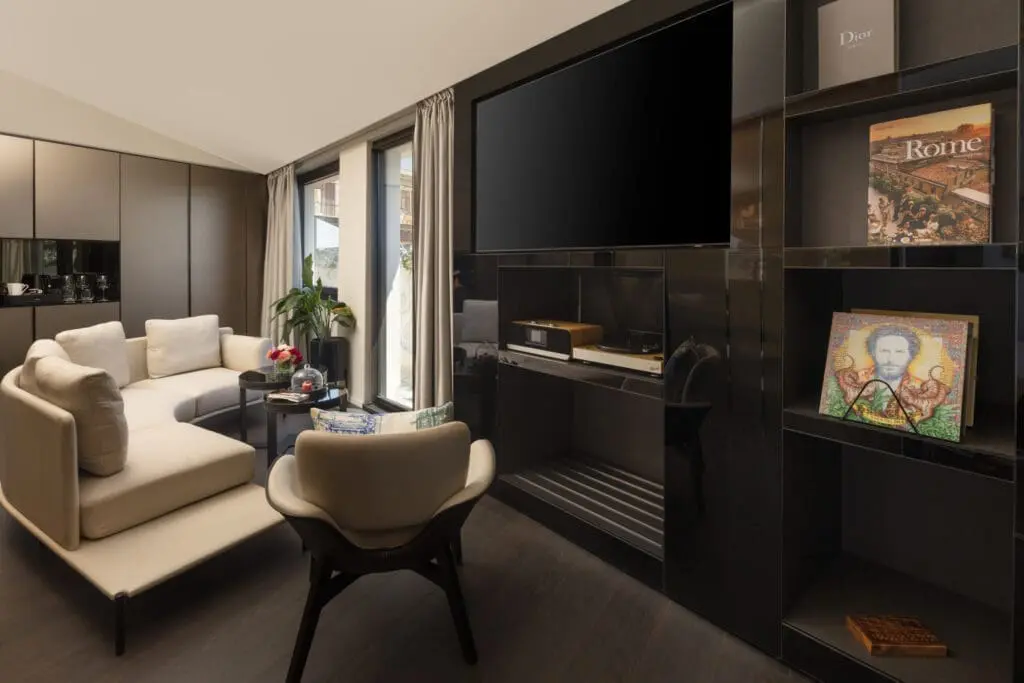The One Bedroom Suite, with its private terrace, offers an extraordinary and thrilling experience thanks to the outdoor space with tiles that form a work of art: you will feel the magic overlooking the Horti Sallustiani. With a separate lounge area you will also have your indoor space to relax.