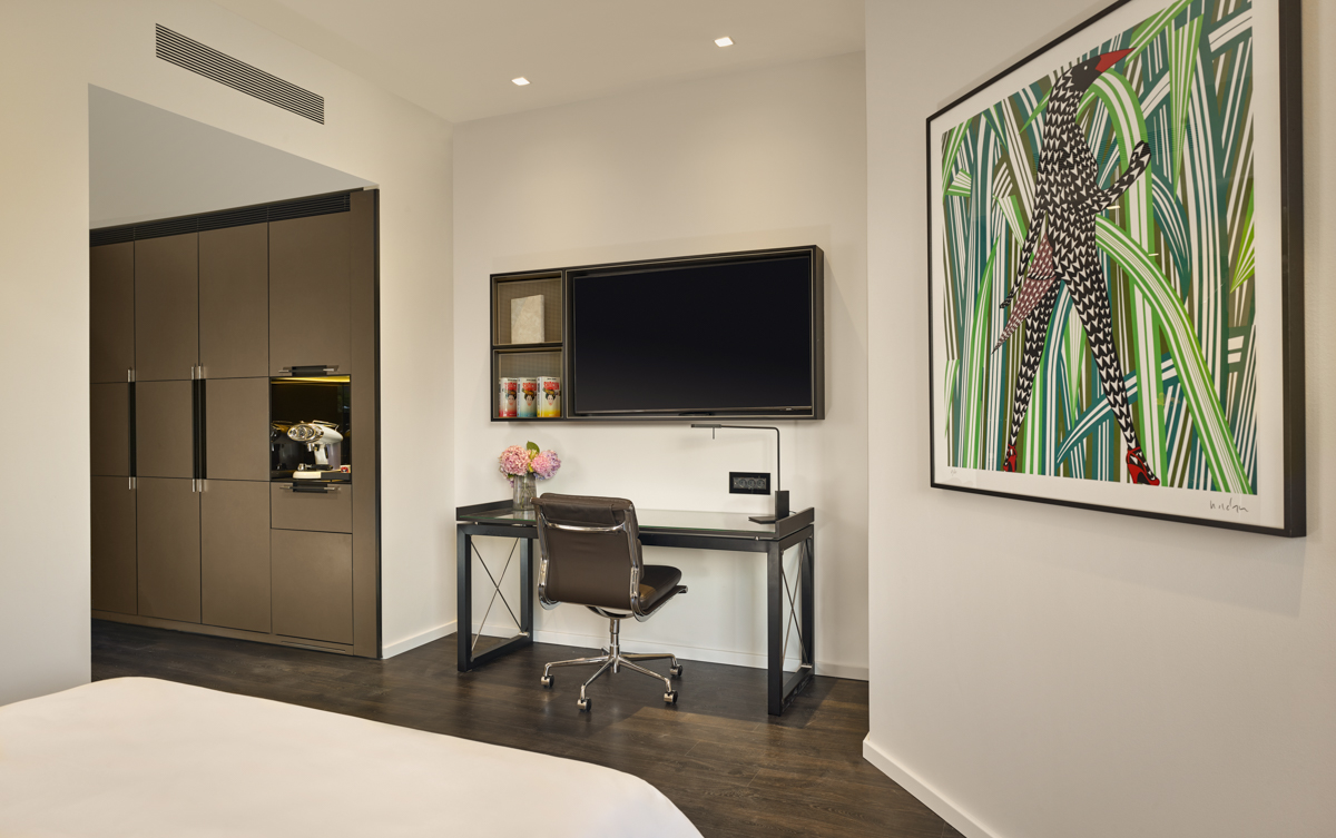 The stylish getaway you’ve been waiting for. Our Art Room – Courtyard View includes one king or two twin beds. Each room features a unique piece of art from our signature artist, luxe bath amenities, an ILLY espresso machine, smart TV, plus a courtyard view.