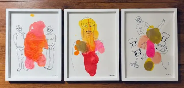 With a playful yet poignant visual language, Ress creates dreamlike scenes filled with figures at rest and in motion — from anonymous lovers to imagined creatures. His drawings blur the line between fantasy and memory, inviting the viewer into a world of soft tension and quiet intimacy.