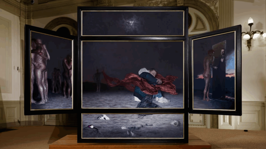 His piece Sanctuarium, featured in this exhibition, won first prize in the television program Project Rembrandt in 2024. The work is a deeply personal altarpiece that reflects his journey of self-acceptance and living with HIV — a powerful and compassionate statement on vulnerability and inner strength.
