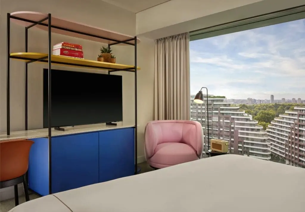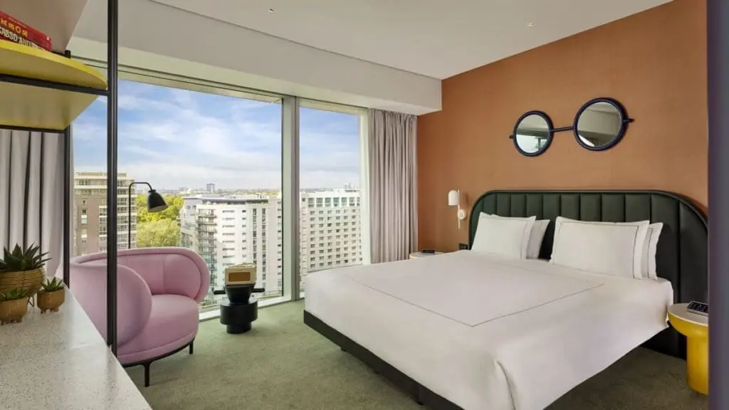 No habrá forma de que quieras moverte de este espacio con vistas del perfil de la ciudad al oeste de Londres a través de unas ventanas inmensas y desde los pisos 10 a 14. Cada habitación presenta los deslumbrantes y dinámicos elementos estéticos de Jaime Hayon, e incluye gaseosas y refrigerios de cortesía, artículos de tocador KEVIN.MURPHY, alisadores de pelo Dyson y, lo más importante, la cafetera con espumador para preparar un latte perfecto.