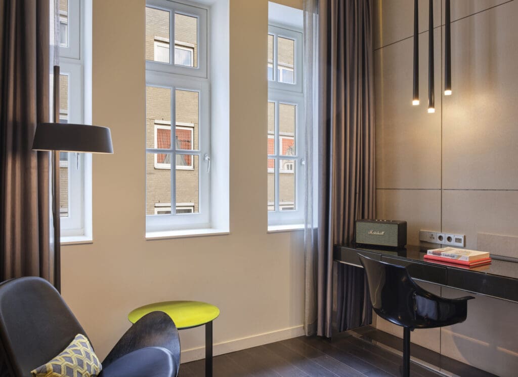 Chaque chambre Art Room est équipée d’une literie de rêve en coton égyptien, de haut-parleurs Marshall puissants et d’un accès gratuit à la galerie, au spa, à la salle de sport et à la piscine d’art’otel (et plus encore, lisez la suite !). Surplombant notre cour intérieure et l’installation artistique « Unlimited » de l’Atelier Van Lieshout, installez-vous confortablement et profitez-en :