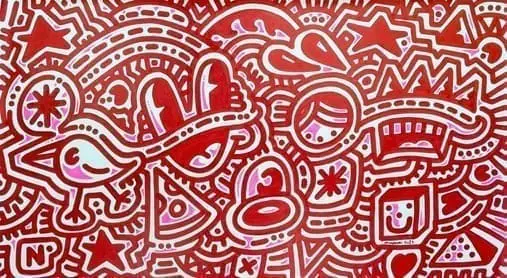Ottograph is an Amsterdam-based artist who creates large-scale murals in his signature doodle style. Starting his career painting subways in Amsterdam, his artworks now can be seen around the world. From Lisbon, New York, Berlin and even a giant mural in Antwerp’s Modern Art Museum. You may recognize Ottograph’s artwork as it’s also featured in our 1×1: A Fusion of Talent Exhibition.