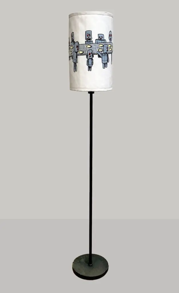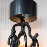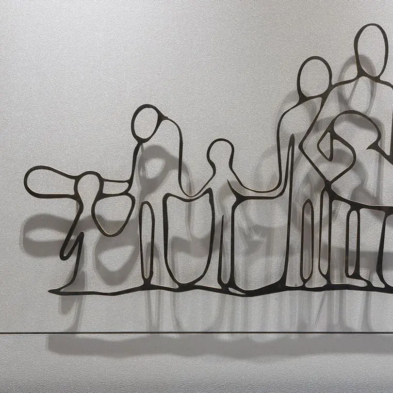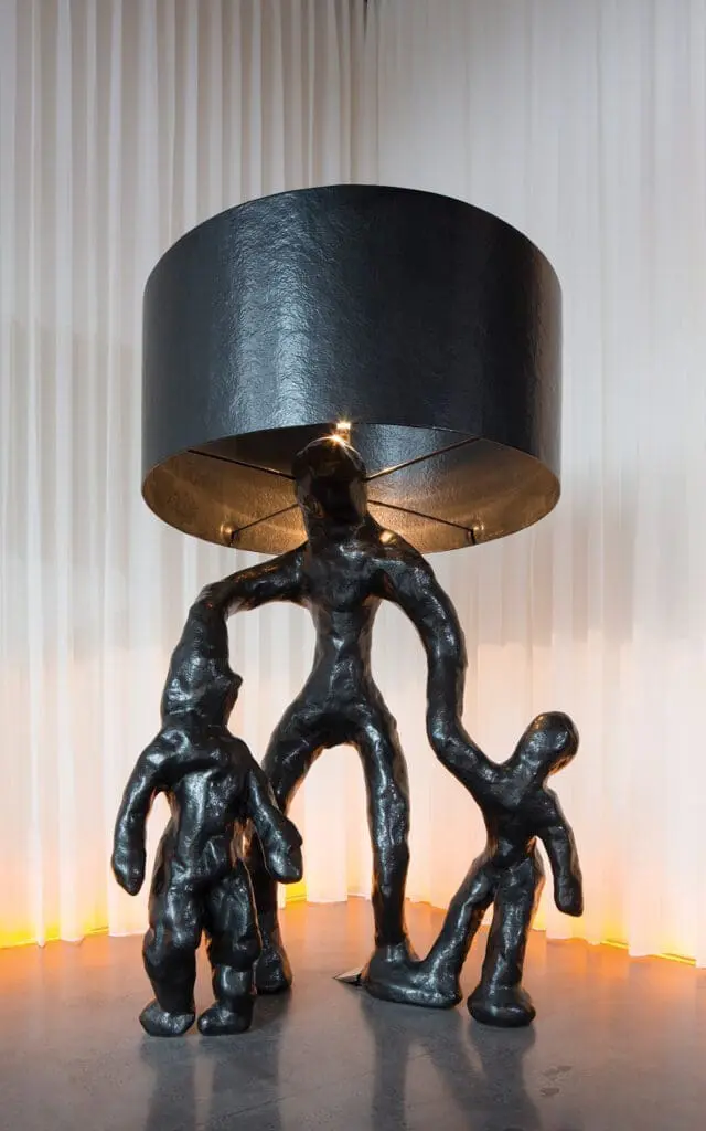 Family Lamp toont een ouder, een vaderfiguur, die zich met zijn twee kinderen voortbeweegt. De figuur fungeert als anker, een baken voor de twee kleine kinderen. Leidt hij ze naar een zonnigere toekomst of beschermt hij ze tegen het donkere verleden dat achter hen ligt?