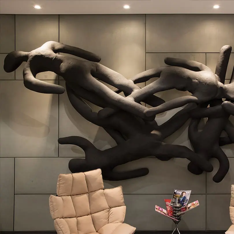 Wall Decoration bestaat uit een in elkaar verstrengelde, haast abstracte groep menselijke figuren. Misschien slapen ze, maar misschien leven ze niet meer – het einde van de levensloop.