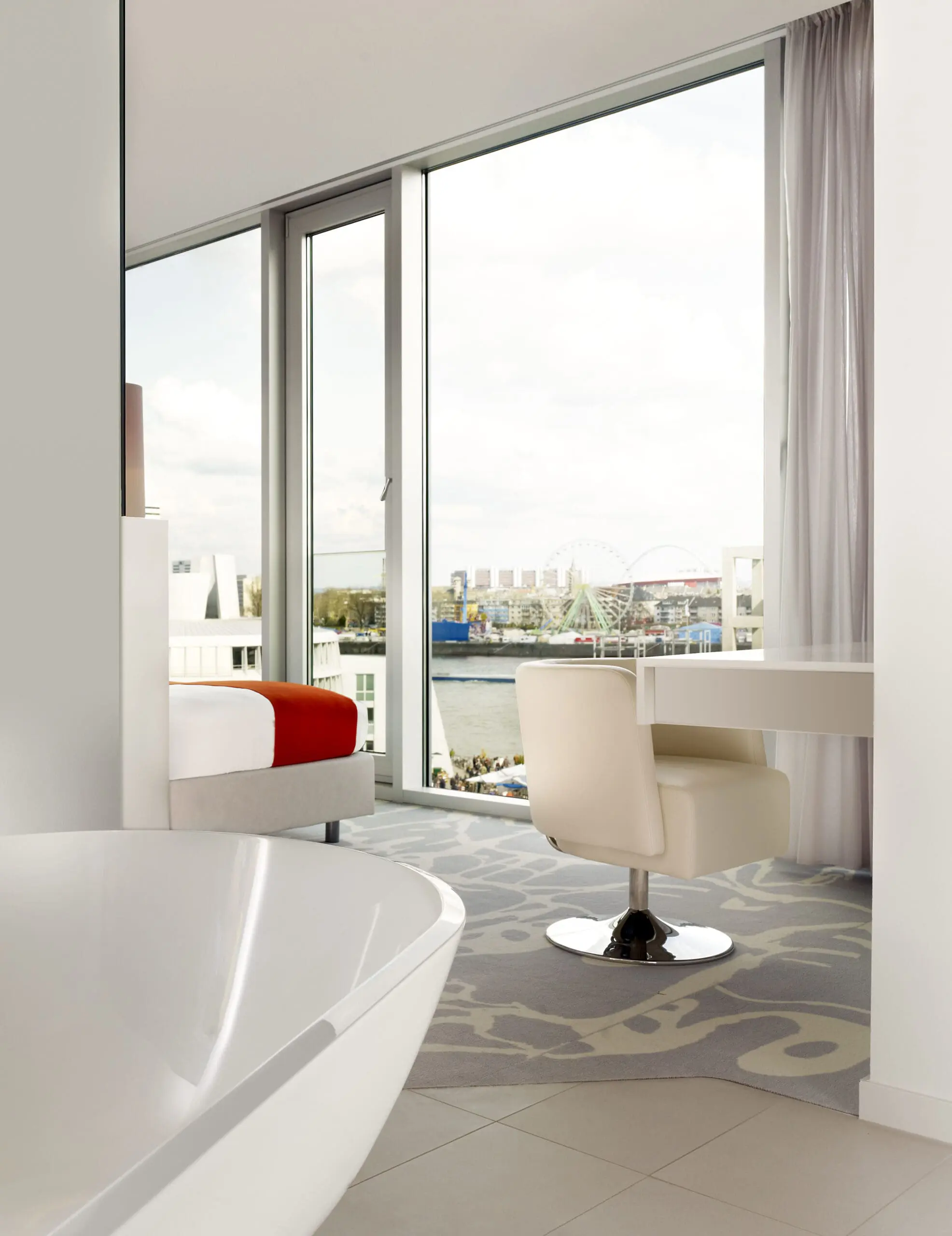 Op de bovenste verdieping heb je genoeg ruimte om je tijdens je reis helemaal thuis te voelen. Geniet van een panoramazicht op de haven vanuit je kingsize bed of vanaf de bedbank. In deze luxe suites slaap je in stijl tijdens je bezoek aan Keulen.