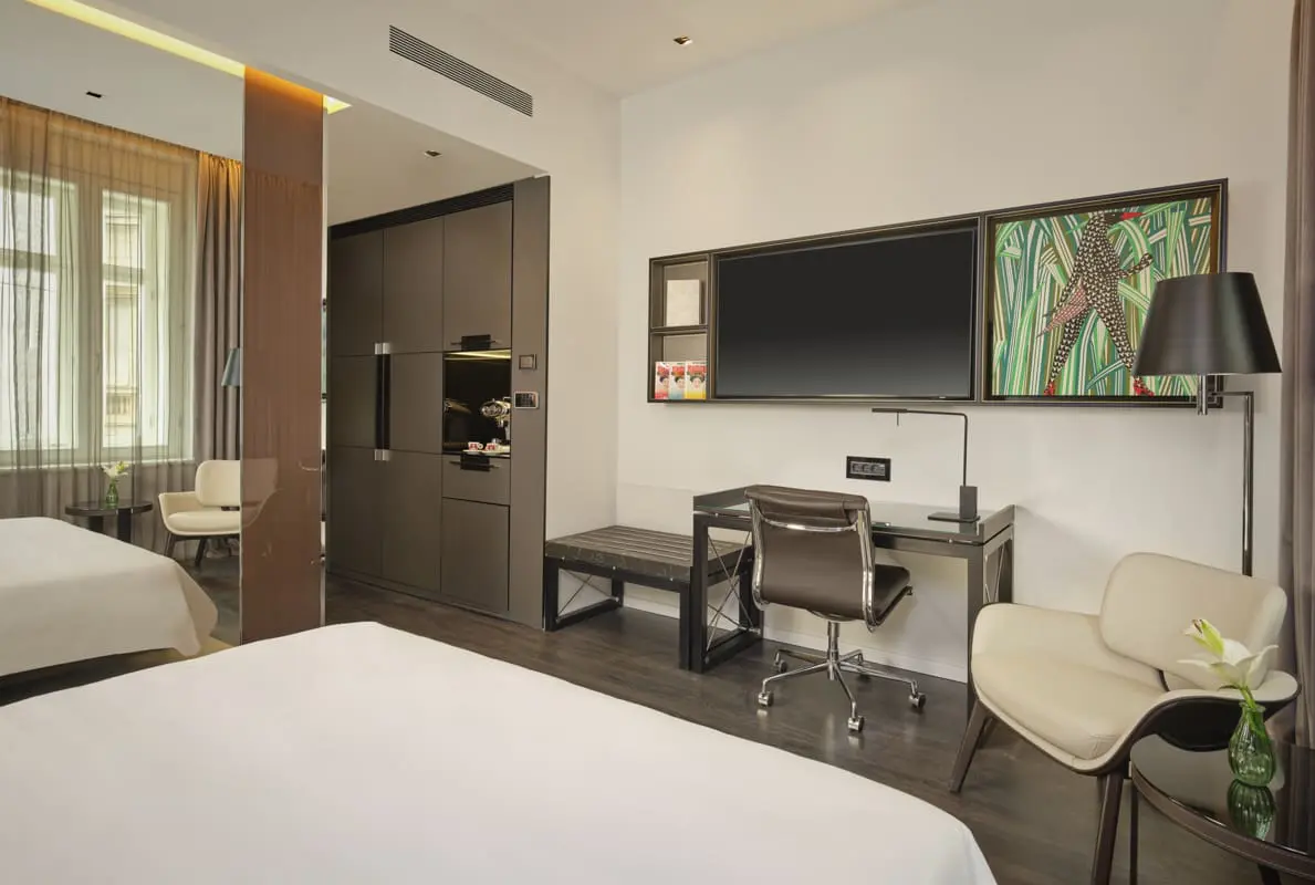 Ruimte om te ontspannen, je creativiteit de vrije loop te laten en de stad te verkennen. Onze Art Studio heeft hetzelfde verfijnde ontwerp als alle kamers in het art’otel, maar biedt nog meer ruimte. De kamer beschikt over smartvoorzieningen, een flatscreen-tv van 55 inch, een kingsize bed, een bedbank en de faciliteiten en kunst die je van art’otel gewend bent.